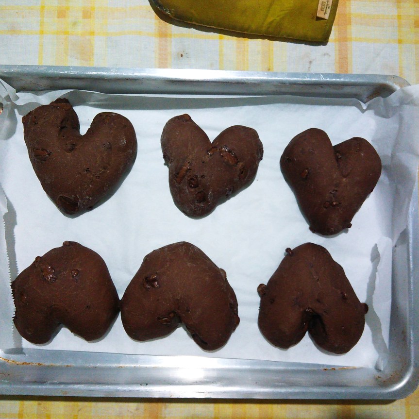 - Place balls/hearts on a greased baking sheet, cover and leave in a warm place for about an hour to rise.